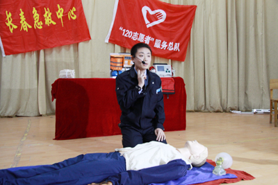 下午的急救培训由校团委、精品久久久久成人码免费动漫_久久无码专区国产精品发布_亚洲一区二区三区久久久久_久久国产精品亚洲一区二区_亚洲AV永久久久久久久无码精品_精品综合久久久久久98_亚洲国产精品久久久久蜜桃噜噜_精品国产乱码欠欠欠欠精品医务处、长春市120急救中心和阳光志愿者联合会联合主办,培训向同学们介绍了关于紧急救治的知识——用于急救呼吸骤停的徒手心肺复苏法、用于处理气道异物梗塞的海氏冲击法,以及处理触电、溺水、烫伤、中暑等紧急情况的方法。培训活动采取了现场互动的方式,邀请同学们走上台来,亲自动手体验基本的包扎法、心脏复苏急救法以及海氏冲击法等急救方法的具体操作。同学们踊跃参与,上台参加演示的同学们还得到了张老师的亲手指导和纠正。